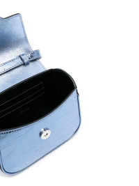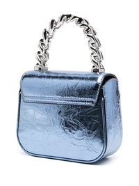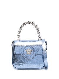 La Medusa metallic leather mini bag Versace proves that even small accessories can make a big impact with this mini bag. It’s crafted from metallic-blue leather with a crackled effect and suspended by a chunky silver-tone chain-link handle. The complementary Medusa hardware is a signature finishing touch. Highlights - Blue - Calf leather - Metallic effect - Medusa plaque detail - Silver-tone hardware - Foldover top - Single chain-link top handle - Adjustable shoulder strap - Main compartment Made in Italy Composition Lining: Calf Leather 100% Outer: Lamb Skin 100% SIZE & FIT Model measurements Height 5 ft 10 in(1.78 m) Bust/Chest 30.7 in(78 cm) Hips 34.64 in(88 cm) Waist 23.22 in(59 cm) Measurement DEPTH 2.36 in(6 cm) HANDLE 3.54 in(9 cm) HEIGHT 4.72 in(12 cm) STRAP 21.65 in(55 cm) WIDTH 6.29 in(16 cm)