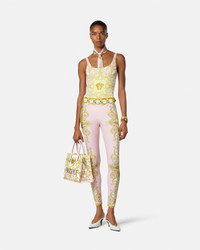This tote bag is crafted from canvas with leather top handles and features an all-over Spring Barocco print, detailed with front Medusa hardware. It has leather raised Versace logo lettering and is complete with two zippered pockets and a leather protector strap. The style can be worn in-hand or on the shoulder for added versatility. The front D-ring provides an optional attachment for a keychain or charm. - Spring Barocco print - La Medusa hardware - Versace logo lettering - Top handles - Two interior zippered pockets - Detachable and adjustable shoulder strap - Leather feet - Outer composition: 100% Cotton - Lining: 100% Cotton - Trim: 100% Calf leather Size & Fit - L11.6 x W5.7 x H9.4" / L29.5 x W14.5 x H24 cm - Handle drop: L5.1" / L13 cm - Shoulder strap: L33.1-40.9" / L84-104 cm - Shoulder strap drop: L14.8-22.6" / L37.5-57.5 cm Item: 1005861-1A17148_DTU_UNICA_5PD4V__