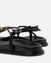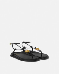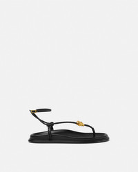 DETAILS Flat calf leather sandals featuring comfortable molded insoles and a braided strap detailed with a central La Medusa hardware - La Medusa hardware - Adjustable ankle strap - Outer composition: 100% Calf leather - Lining: 100% Lambskin - Trim: 100% Calf leather - Sole: 100% Thermoplastic polyurethane Item: 1021103-1A14500_1B00V SIZE & FIT - The shoe weighs approximately 14.1 oz / 0.4 kg for the model size 39 IT