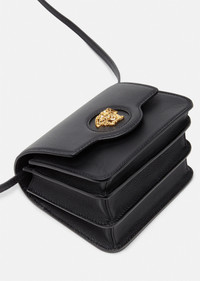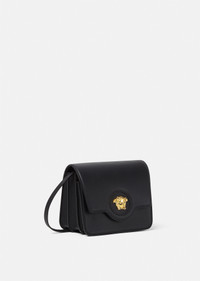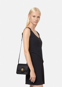 Designed in a contemporary square silhouette, this La Medusa bag complements an array of outfits. Crafted in Italy from premium leather, the bag is adorned with a ton-sur-ton Medusa plaque and features an adjustable shoulder strap. DETAILS & CARE - Medusa plaque - Top handle - Leather shoulder strap - Magnetic button closure - Outer fabric: 100% Calf leather - Lining: 100% Nappa leather SIZE & FIT - Length: 17cm - Width: 10cm - Height: 14.5cm