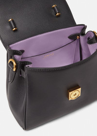 Crafted in Italy from premium leather, Versace's latest handbag is adorned with a Medusa plaque – the same décor that was discovered on the doors of the brand's first headquarters in Milan. The slouchy silhouette can be styled on the wrist or across the shoulder, featuring two detachable shoulderstraps: one leather and one chain. DETAILS & CARE - La Medusa plaque - Top handle - Leather shoulder strap - Chain shoulder strap - Magnetic button closure - Flat internal pocket - Outer fabric: 100% Leather - Lining: 100% Leather - Made in Italy SIZE & FIT - Length: 20 cm - Width: 10 cm - Height: 17 cm - Shoulder straps: min 40, max 50 cm