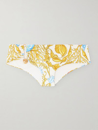 Versace bikini briefs are decorated with a mystical sea-inspired iteration of the label's 'Barocco' print. They've been cut in Italy from stretch fabric and are embellished with the signature 'Medusa' safety pin at the side. Wear yours with the coordinating top in our edit. Size & Fit - 1 = XS - 2 = S - 3 = M - 4 = L - 5 = XL - Fits true to size, take your normal size - Low-rise briefs with medium coverage - Model is 175cm/ 5'9" and is wearing the designer's size 1 Details & Care - Multicolored stretch-polyamide - 90% polyamide, 10% elastane - Hand wash - Lotion, sunscreen, oil and chlorine can cause discoloration of this item; this is not a manufacturing defect. Please follow care instructions to keep your swimwear in the best condition