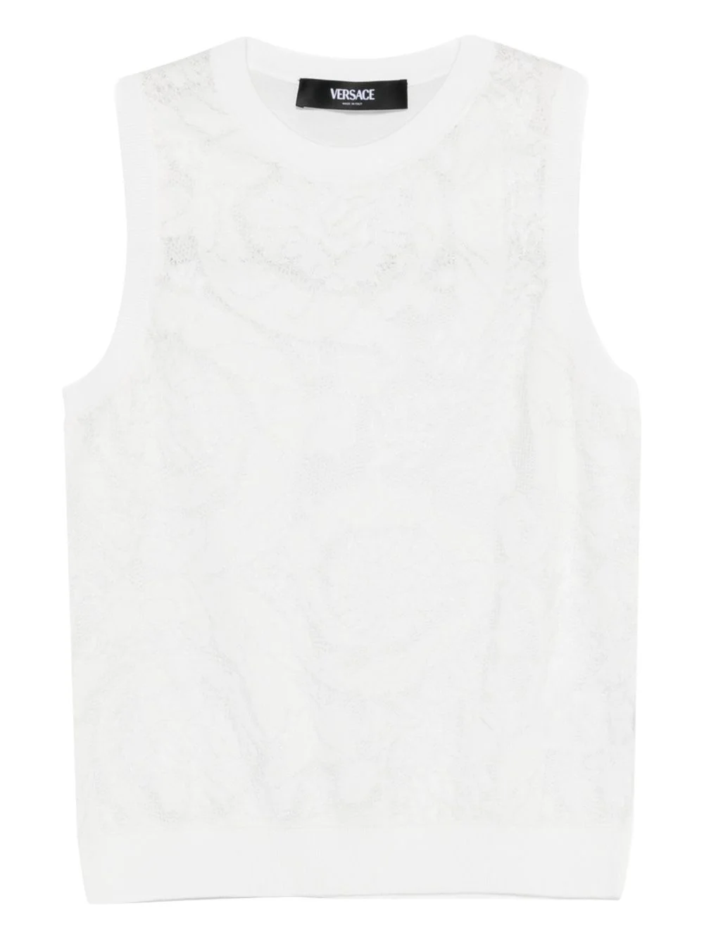lace knit top Highlights - White - Lace details - Knit construction - Sleeveless - Round neck Made in Italy Composition Cotton 83%, Polyester 17% Washing instructions Dry Clean Only