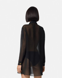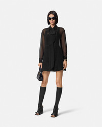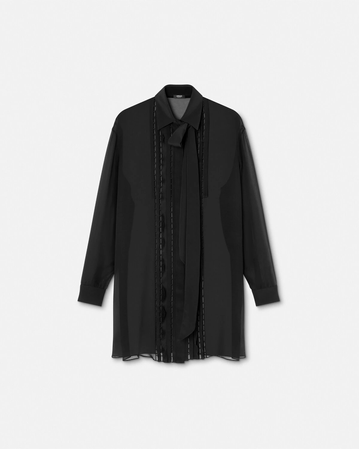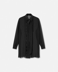 DETAILS A longsleeved semisheer silkgeorgette shirt with a lavalliretie and cutout and ruffled trims along the front - Medusa hardware - Long sleeves - Pointed collar - Lavalliere-tie closure - Concealed front button closure - Buttoned cuffs - Outer composition 1: 100% Silk - Outer composition 2: 75% Acetate, 25% Silk - Trim: 100% Polyester Item: 1015380-1A00523_1B000 SIZE & FIT - The model is 5'10" tall and wears size 38 IT