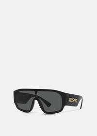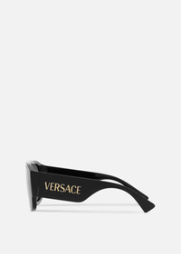 A statement runway style, these thick acetate, aviator sunglasses, are accented by side Versace lettering. DETAILS & CARE - Logo lettering - Frame color: Black - Temple color: Black - Lens color: Dark grey SIZE & FIT - Lens width: 33 mm - Temple: 145 mm