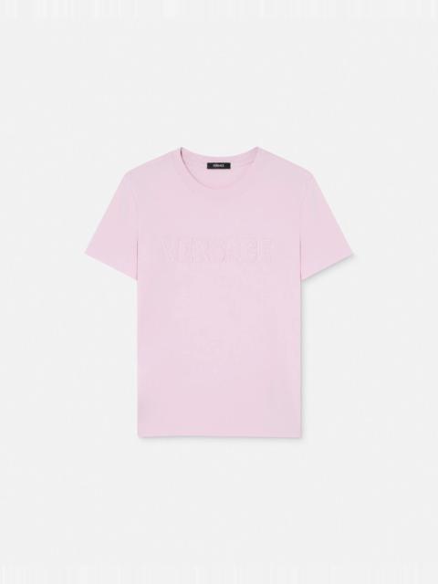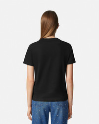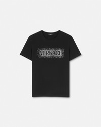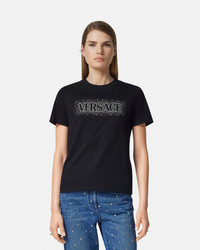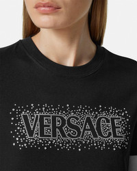 DETAILS This shortsleeved crewneck Tshirt has a slim fit and is made from cotton jersey with a crystalstudded Versace logo that recalls a starry sky in Italian Cielo Stellato - Versace logo motif - Crystal embellishments - Short sleeves - Crewneck - Outer composition: 100% Cotton - Trim: 100% Cotton Item: 1018981-1A13670_2B300 SIZE & FIT - The model is 5'10" / 1.79 m tall and wears size 38 IT