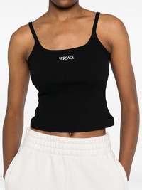 logo-embroidered top Highlights - Black - Spaghetti straps - Scoop neck - Embroidered logo Made in Italy Composition Polyester 100%, Cotton 95%, Spandex/Elastane 5% SIZE & FIT Model measurements Height 5 ft 11 in(1.8 m) Bust/Chest 31.49 in(80 cm) Hips 36.61 in(93 cm) Waist 24.4 in(62 cm) Washing instructions Hand Wash