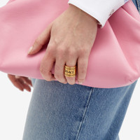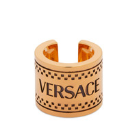 Versace nods to the ‘90s with this Chunky Logo Ring. Expertly cut from gold-tone metal, this throwback piece boasts bold black engraved branding from the era around the band - guaranteed to catch eyes however you style it. - 100% Metal - Engraved Branding