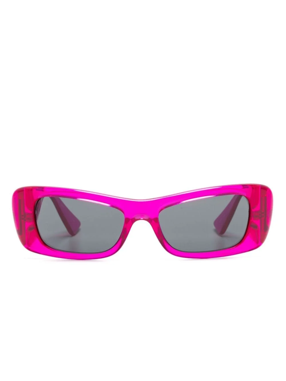 logo-engraved sunglasses Highlights - Fuchsia pink - Logo-engraved arm - Rectangle frame - Tinted lenses - Uv-protective lenses - Sculpted arms - Curved tips - These glasses come with a protective case. Made in Italy Composition Acetate 100% SIZE & FIT Measurement Arm Length 5.31 in(13.5 cm) Bridge Width 0.66 in(1.7 cm) Lens Diameter 2.12 in(5.4 cm) Total Width 5.9 in(15 cm)