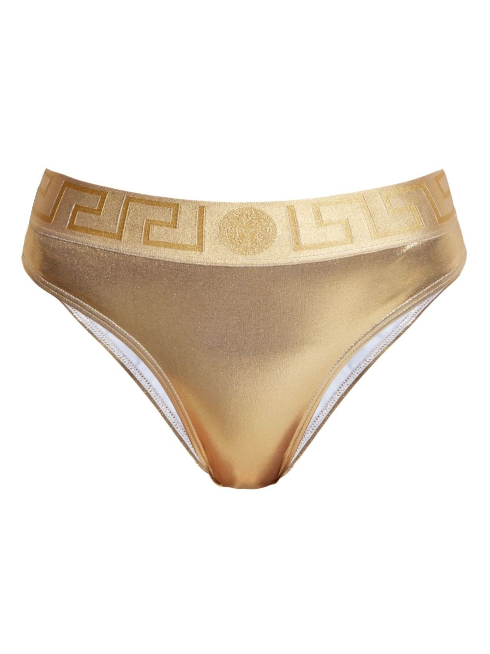 metallic-effect bikini bottom Highlights - Gold-tone - Elasticated waistband - Signature greca detailing - Medium coverage - Be mindful to try on swimwear over your own garments. Made in Italy Composition Polyester 100%
