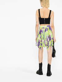 Logo Orchid-print pleated asymmetric skirt Versace reinvents a noughties print from its archives and breathes a new life into it for SS23. The Logo Orchid pattern pairs the delicate flower with the house's lettering, and is given an abstract look here, thanks to this skirt's intricate accordion pleats. Made in Italy Composition Polyester 100% SIZE & FIT Model measurements Height 5 ft 10 in(1.79 m) Bust/Chest 31.49 in(80 cm) Hips 35.03 in(89 cm) Waist 23.62 in(60 cm) FittingInformation This piece fits true to size. We recommend you get your regular size Designed for a loose fit with a close fit at the waist Made with a mid-weight non-stretch fabric Washing instructions Dry Clean Only