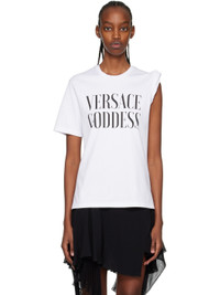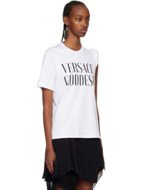 Cotton jersey T-shirt. · Rib knit crewneck · Logo and text printed at front · Rolled edge at padded armscye Supplier color: Optical white 100% cotton. Made in Italy 231404F110006