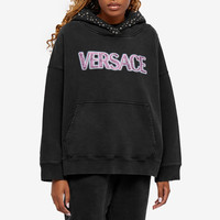 Synonymous with Italian luxury around the globe, Versace’s penchant for maximalist prints and bold graphic patterns runs freely through each collection. Designed with an oversized silhouette, this hoodie features a neon effect logo at the chest. Finished with stud embellishments on the hood. - 100% Cotton - Drawstring Hood - Kangaroo Pocket
