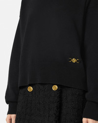DETAILS A boxy longsleeved crewneck sweater knit from a wool and cashmere merino blend with Houses signature Medusa 95 emblem - Medusa '95 hardware - Long sleeves - Ribbed crewneck, hem, and cuffs - Outer composition: 69% Pure virgin wool, 30% Cashmere, 1% Elastane Item: 1017253-1A11287_1B000 SIZE & FIT - The model is 5'10" / 1.77 m tall and wears size 38 IT