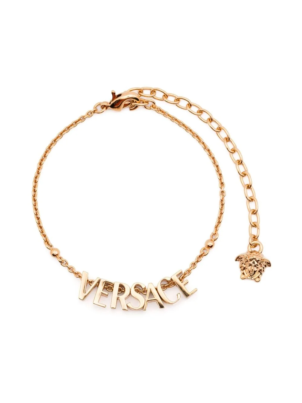 logo-lettering bracelet Highlights - Gold-tone - Lobster claw fastening - Adjustable-length chain - Medusa head motif Made in Italy SIZE & FIT Model measurements Height 5 ft 10 in(1.77 m) Bust/Chest 31.88 in(81 cm) Hips 36.22 in(92 cm) Waist 24.01 in(61 cm) Measurement PENDANT LENGTH 0.39 in(1 cm) PENDANT WIDTH 0.39 in(1 cm) TOTAL LENGTH 9.84 in(25 cm) WIDTH 0.03 in(0.1 cm)