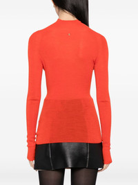 long-sleeved jumper Highlights - Burnt orange - Long sleeves - Straight hem - Bead-logo detailing Made in Italy Composition Virgin Wool 50%, Polyamide 49%, Elastane 1% SIZE & FIT Model measurements Height 5 ft 10 in(1.78 m) Bust/Chest 30.31 in(77 cm) Hips 37 in(94 cm) Waist 24.8 in(63 cm) FittingInformation Designed for a close fit throughout Made from a lightweight non-stretch fabric