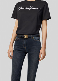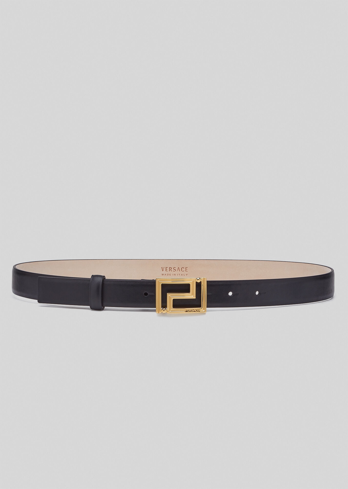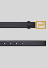 Crafted from supple calf leather, this elegant belt has a geometric, Greca-shaped buckle evoking the twisting and turning path of the Meander river. DETAILS & CARE - Meander buckle - Collar stud buckle fastening - Outer fabric: 100% Leather - Made in Italy