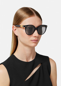 DETAILS These sunglasses feature round shaped lenses and acetate frames and are accented with Medusa '95 hardware at the temples. - Medusa '95 hardware - Frame color: Black - Temple color: Black - Lens color: Dark gray - Polarized lens - Frame: Acetate - Temple: Nylon Item: O4442-OGB18155_RTU_TU_ONUL__ SIZE & FIT - Lens width: 2.2" - Bridge: 0.8" - Temple: 5.5"