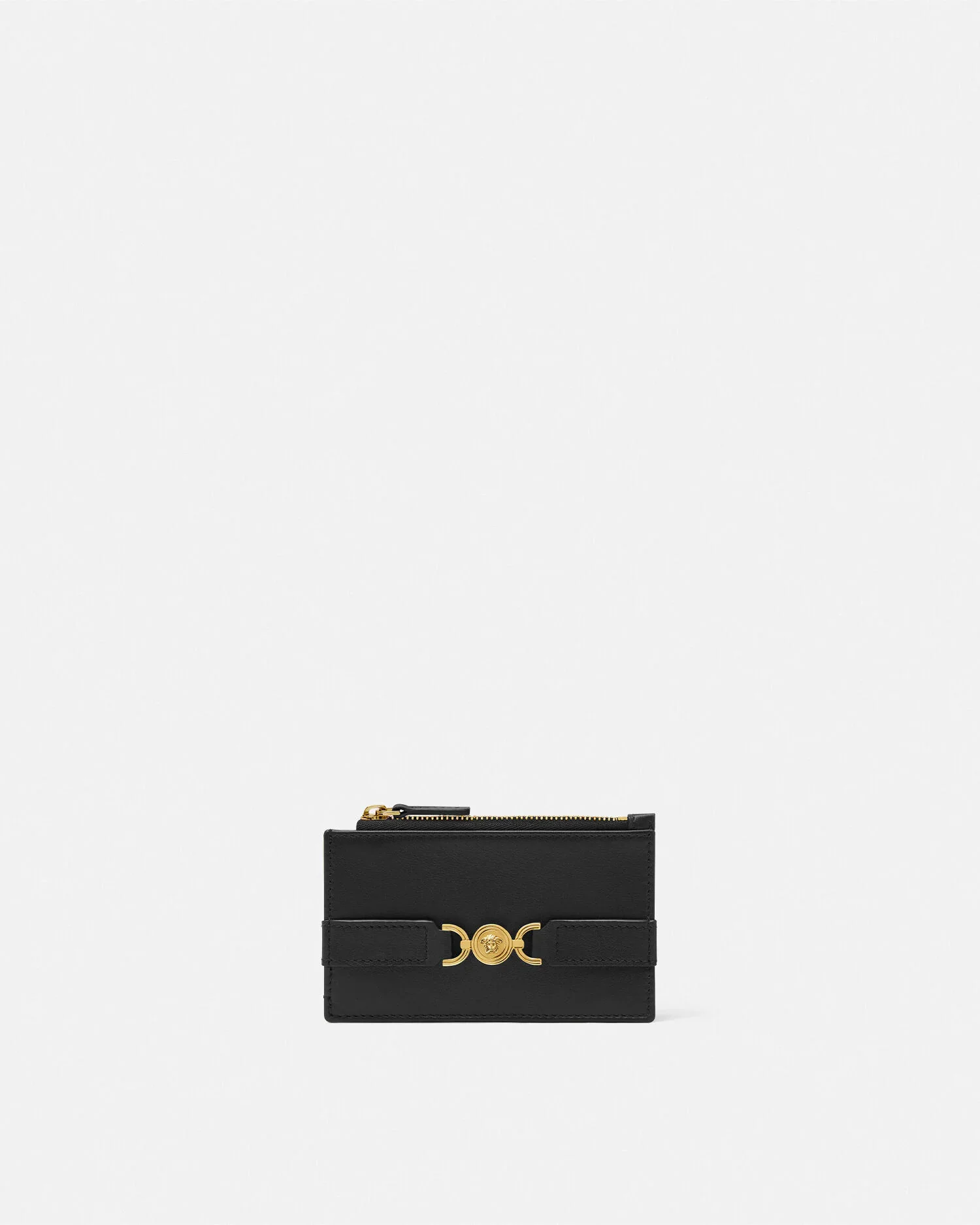 Crafted from smooth leather, this zipped cardholder is detailed with Medusa '95 hardware—a signature House code first seen in collections from 1995. - Medusa '95 hardware - Versace logo embossing - Card compartments - Top zip closure - Outer composition: 100% Calf leather - Lining: 100% Lambskin - Leather from tanneries certified to high levels of environmental performance Size & Fit - L5.1 x W.2 x H3.1" - Approximate weight: 60 g Item: 1016227-1A10795_DTU_UNICA_1B00V__