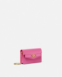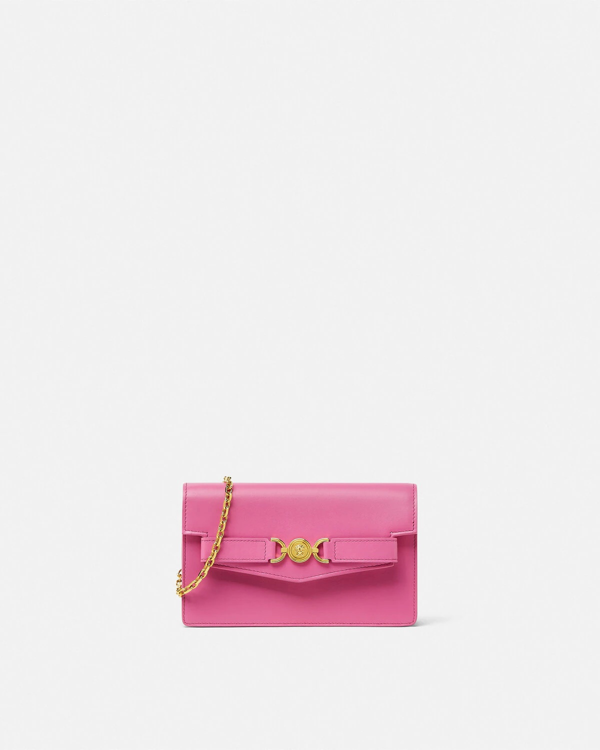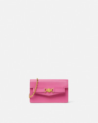 DETAILS A smooth calf leather clutch featuring a Medusa 95 hardware at the front multiple interior card slots a spacious slip pocket and a zipped pocket The accessory has a thin removable chain strap for optional crossbody wear - Medusa '95 hardware - Magnetic closure - 6 card slots - Slip pocket - Zipped pocket - Detachable chain strap - Outer composition: 100% Calf leather - Lining: 60% Cotton, 40% Viscose - Trim: 100% Lambskin Item: 1020075-1A15256_1PV9V SIZE & FIT - L7.7 x W1.6 x H4.5" / L19.5 x W4 x H11.5 cm - Shoulder strap: L40.9" / L104 cm - Shoulder strap drop: L19.7" / L50 cm - Approximate weight: 10.6 oz / 0.3 kg