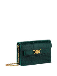 Medusa '95 croc-embossed wallet Highlights - Green - Croc-embossed effect - Gold-tone hardware - Chain-link shoulder strap - Flap top - Internal slip pocket Made in Italy Composition Outer: Calf Leather 100% Lining: Cotton 60%, Viscose 40% SIZE & FIT Measurement DEPTH 1.57 in(4 cm) HEIGHT 4.52 in(11.5 cm) WIDTH 7.67 in(19.5 cm)