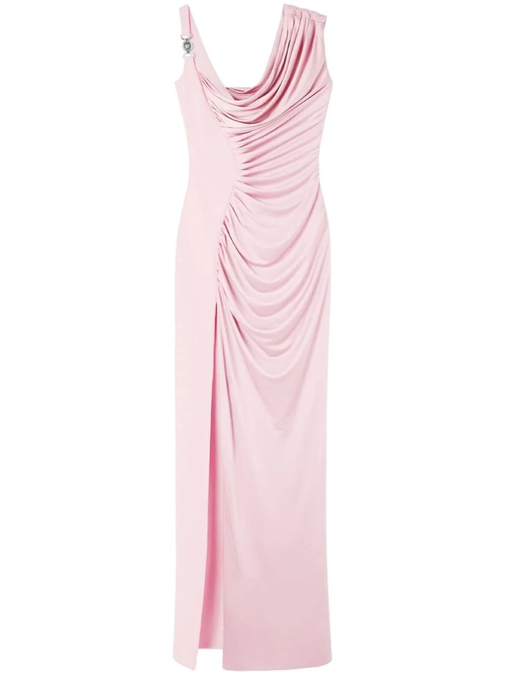 Medusa '95 draped gown Highlights - Light pink - Draped design - Silver-tone logo plaque - Side slit - Scoop neck - Sleeveless - Straight hem - Long length Made in Italy Composition Viscose 100%