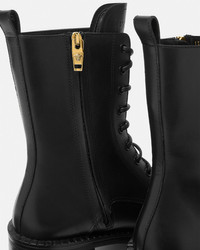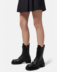 DETAILS Lace-up combat ankle boots made from smooth leather, featuring a Medusa emblem. - Medusa hardware - Lace-up - Treaded sole - Outer composition: 100% Calf leather - Lining 1: 100% Lambskin - Lining 2: 100% Goat leather - Sole: 100% Rubber Item: 1011387-1A02254_1B00V SIZE & FIT - The shoe weighs 21.1 oz for the model size 38 - All sizes fit Italian standards - Fits true to size, take your normal size - Heel: 1.9" - Platform: 1.0"