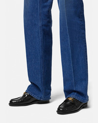 DETAILS These slipon leather loafers have a polished finish and the Medusa 95 detail at the penny strapa House signifier that first debuted in the mid90s - Medusa '95 hardware - Slip on - Round toe - Penny strap - Flat stacked heel - Outer composition: 100% Calf leather - Lining 1: 100% Lambskin - Lining 2: 100% Goat leather - Sole: 100% Calf leather Item: 1012123-1A08773_1B00V SIZE & FIT - The shoe weighs approximately 10.6 oz / 0.3 kg for the model size 37 IT - Fit is true to size, we recommend taking your normal size - Heel: 0.8" / 2 cm