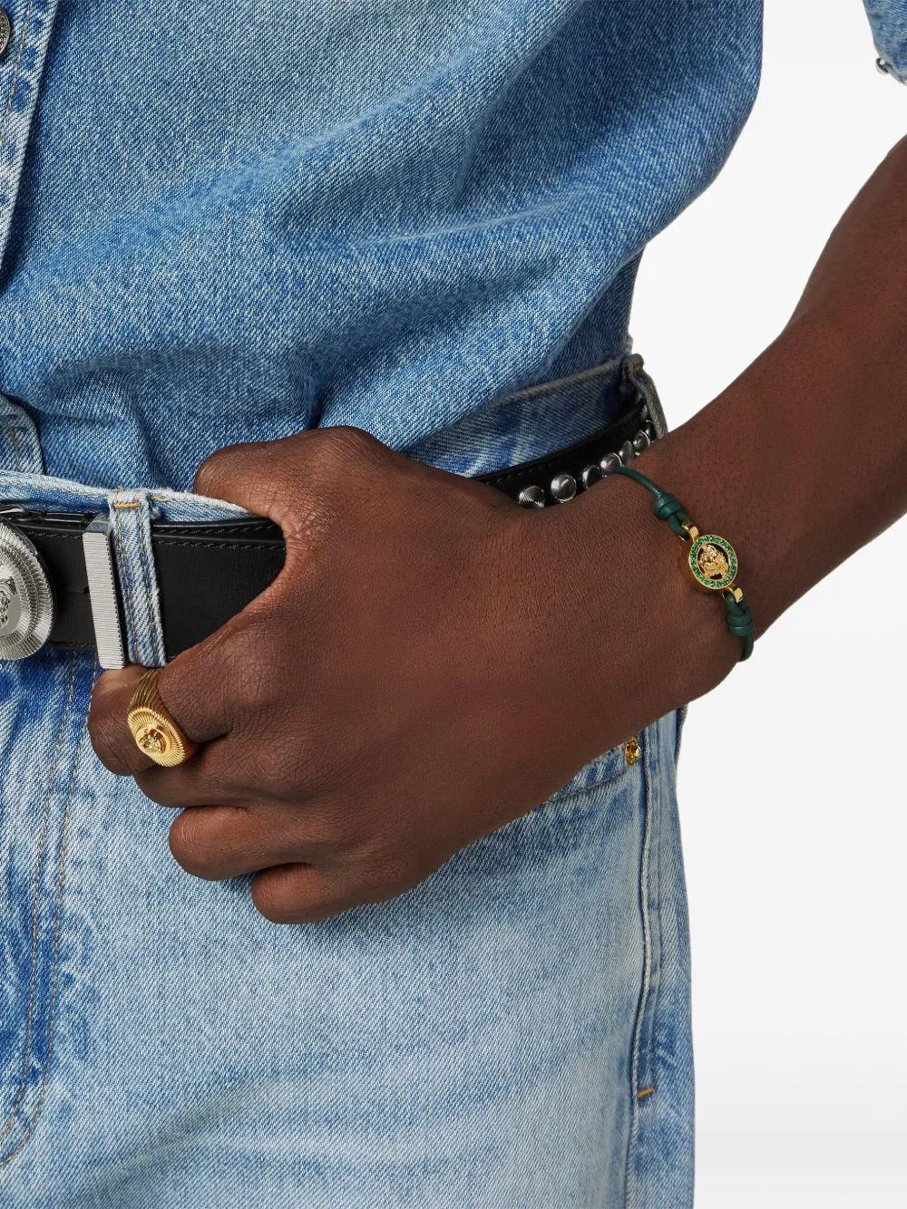 Medusa 95' logo-charm bracelet Highlights - Green - Gold-tone hardware - Medusa charm - Adjustable knot fastening Made in Italy