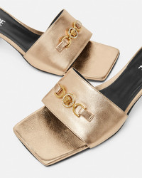 DETAILS These open-toe mules feature low-block heels and are crafted from smooth leather in a metallic finish. The squared-toe design is accented by a Medusa '95 hardware on the uppers. - Medusa '95 hardware - Squared toe - Slip-on - Squared toe - Outer composition: 100% Lambskin - Lining 1: 100% Lambskin - Lining 2: 100% Goat leather - Sole: 100% Calf leather Item: 1013004-1A08539_1Y84V SIZE & FIT - The shoe weighs approximately 0,3 kg for the model size 39 IT - Heel: 2.2" / 5.5 cm