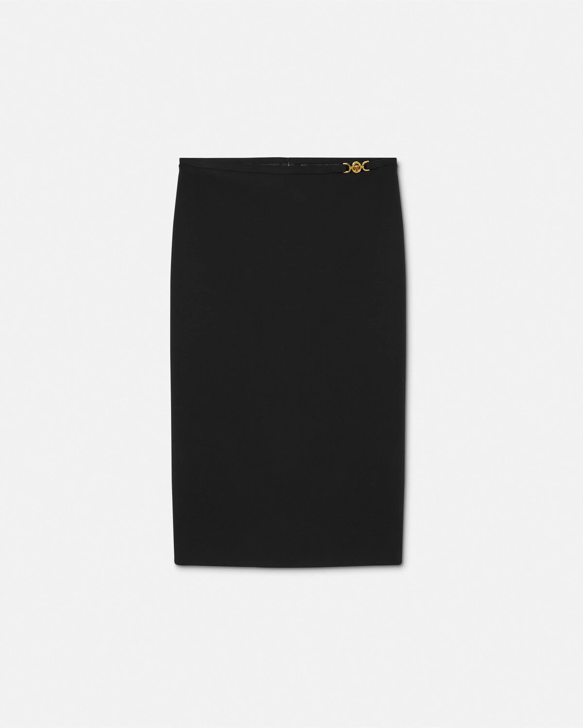 DETAILS This stretch-wool midi skirt is accented by a Medusa '95 emblem at the waist. - Medusa '95 hardware - Outer composition: 98% Wool, 2% Elastane - Lining: 100% Cupro - RWS-certified responsibly sourced wool Item: 1011787-1A00905_1B000 SIZE & FIT - The model is 5'8" m tall and wears size 38 IT