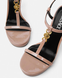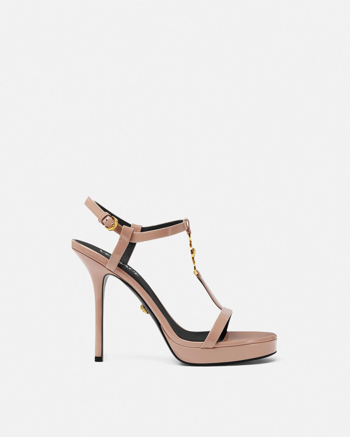 DETAILS These stiletto-heeled sandals are crafted from patent leather and are accented with a crystal-embellished Medusa hardware at the central strap. - Medusa'95 hardware - Crystal embellishments - Round toe - Stiletto heels - Adjustable ankle strap with buckle fastening - Outer composition: 100% Calf leather - Lining 1: 100% Lambskin - Lining 2: 100% Goat leather - Sole: 100% Calf leather - Trim: 100% Lambskin Item: 1013713-D2VE_1PS0V SIZE & FIT - The shoe weighs approximately 0,3 kg for the model size 39 IT - Heel: 4.5" / 11.5 cm - Plateau: 0.8" / 2 cm