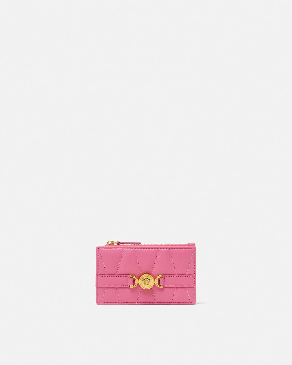 DETAILS This zipped card holder is crafted from soft nappa leather featuring a Vquilting design and is accented by the signature Medusa 95 hardware - Medusa '95 hardware - Top zip closure - Four back card slots - Outer composition: 100% Lambskin - Lining: 100% Lambskin Item: 1016227-1A12975_1PV9V SIZE & FIT - L5.1" x W0.2" x H3.1" / L13 x W0.5 x H8 cm - Approximate weight: 2 oz / 56 g