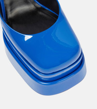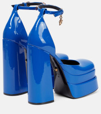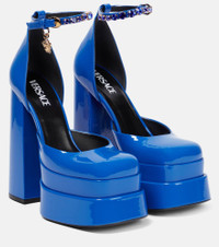 Since their debut on Versace’s FW21 runway, the Medusa Aevitas platform pumps quickly became a fashion favorite. Part of the Versace x Mytheresa exclusive capsule collection, this pair is made in Italy from patent leather. Product Details - Lining: leather - Sole: leather insole and sole - Toe shape: square toe - Upper: leather - Comes with dust bags - Closure: buckle-fastening ankle strap - Made in Italy - Item number: P00813240 Size & Fit - True to size - Narrow at the toe - European sizes - 16cm-6.5" heel (size EU 38) - 7cm-3" platform (size EU 38)
