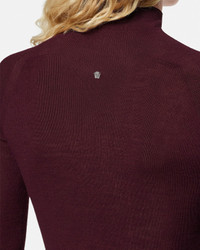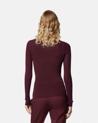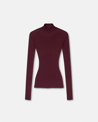 A seamless ribbed-knit top in merino wool with a mockneck and subtle Medusa stud at the back. - Medusa hardware - Long sleeves - Mockneck - Outer composition: 50% Pure Virgin Wool, 49% Nylon, 1% Elastane - Fabric made from recycled nylon Size & Fit - The model is 5'9" / 1.75 m tall and wears size 38 IT Item: 1017241-1A16171_1RD90