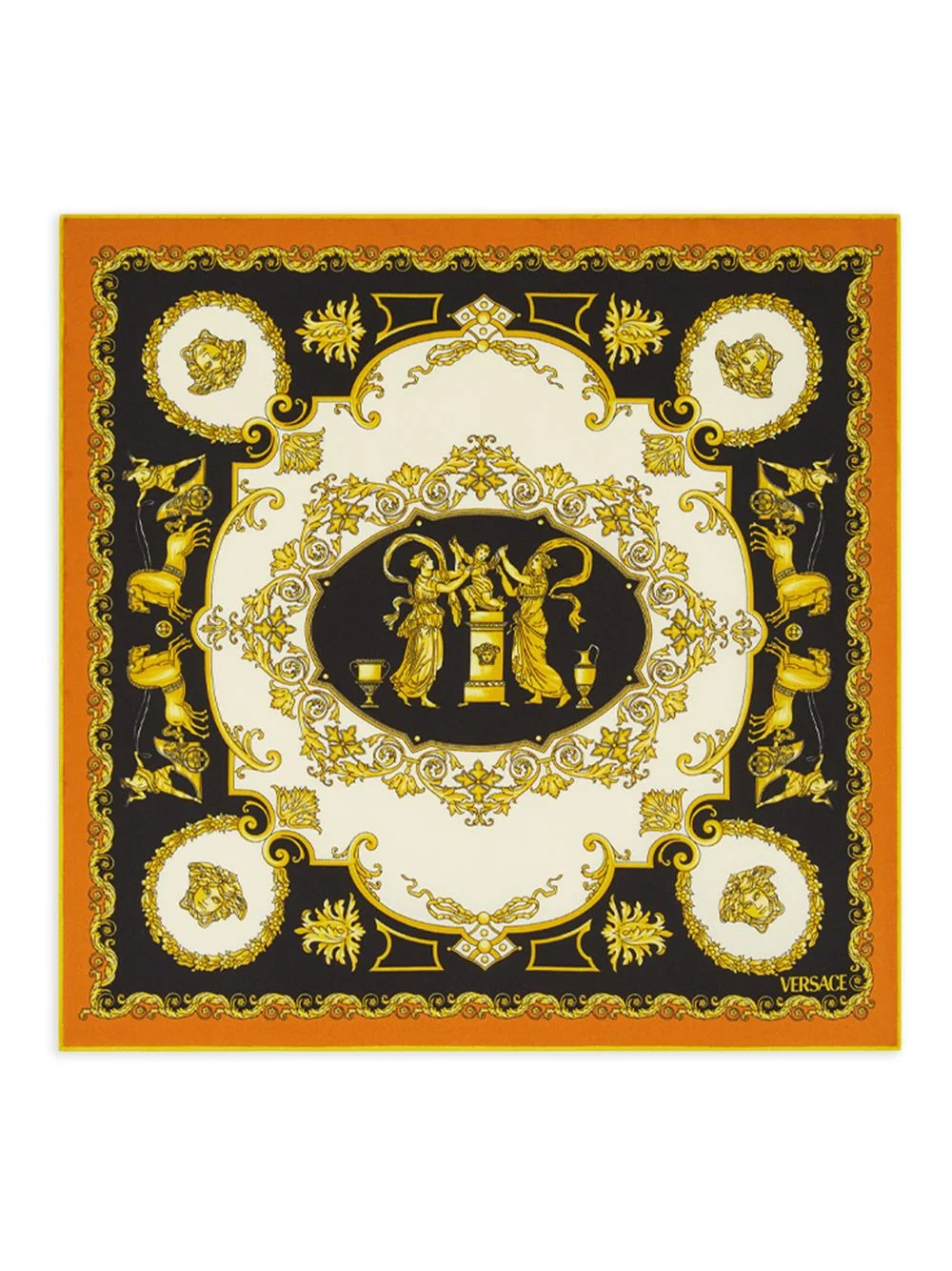 Medusa baroque scarf Highlights - Black and gold-tone - Baroque pattern - Medusa motif - Border detail - Square shape Made in Italy Composition Silk 100% SIZE & FIT Measurement LENGTH 17.71 in(45 cm) WIDTH 17.71 in(45 cm)