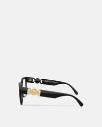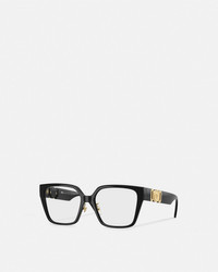 DETAILS An addition to the Medusa Biggie line these squared optical glasses with an injected construction and adjustable nose pads feature the iconic goldtone Medusa Biggie embellishment in a smaller size at the wide temples - Medusa Biggie hardware - Adjustable nose pads - Frame colour: Black - Temple colour: Black - Lens colour: Transparent - Frame: Injected - Temple: Injected Item: O3371D-OGB154_ONUL SIZE & FIT - Lens: W2.1 x H1.9" / W54 x H47.1 mm - Bridge: 0.7" / 17 mm - Temple: 5.7" / 145 mm