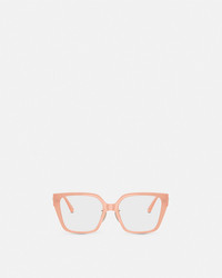 DETAILS Item: - Medusa Biggie hardware - Adjustable nose pads - Frame colour: Opal pink - Temple colour: Opal pink - Lens colour: Transparent - Frame: Injected - Temple: Injected Item: O3371D-O549754_RTU_TU_ONUL__ SIZE & FIT - Lens: W2.1 x H1.9" / W54 x H47.1 mm - Bridge: 0.7" / 17 mm - Temple: 5.7" / 145 mm