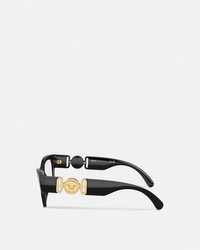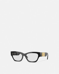 DETAILS An addition to the Medusa Biggie line, these soft cat-eye optical glasses with an injected construction feature the iconic gold-tone Medusa Biggie embellishment in a smaller size at the wide temples. - Medusa Biggie hardware - Frame color: Black - Temple color: Black - Lens color: Transparent - Frame: Injected - Temple: Injected Item: O3367U-OGB152_RTU_TU_ONUL__ SIZE & FIT - Lens: W2 x H1.4" / W52 x H36.1 mm - Bridge: 0.7" / 17 mm - Temple: 5.5" / 140 mm
