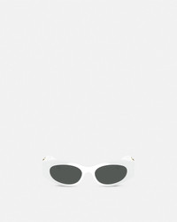DETAILS An addition to the Medusa Biggie line, these cat-eye oval sunglasses with an injected construction feature the iconic gold-tone Medusa Biggie embellishment at the wide temples. - Medusa Biggie hardware - Frame color: White - Temple color: White - Lens color: Dark gray - Frame: Injected - Temple: Injected Item: O4480U-O3148751_RTU_TU_ONUL__ SIZE & FIT - Lens: W2 x H1.3" / W51 x H32.9 mm - Bridge: 0.7" / 18 mm - Temple: 5.5" / 140 mm