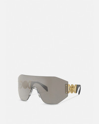DETAILS These wide sunglasses feature Medusa Biggie hardware at the temples and are accented with a logo at the nose bridge. - Medusa Biggie hardware - Frame color: Gray/mirror silver-tone - Temple color: Gold-tone - Lens color: Gray/mirror silver-tone - Frame: Metal - Temple: Metal Item: O2258-O10026G45_RTU_TU_ONUL__ SIZE & FIT - Lens width: 5.7" - Temple: 4.9"