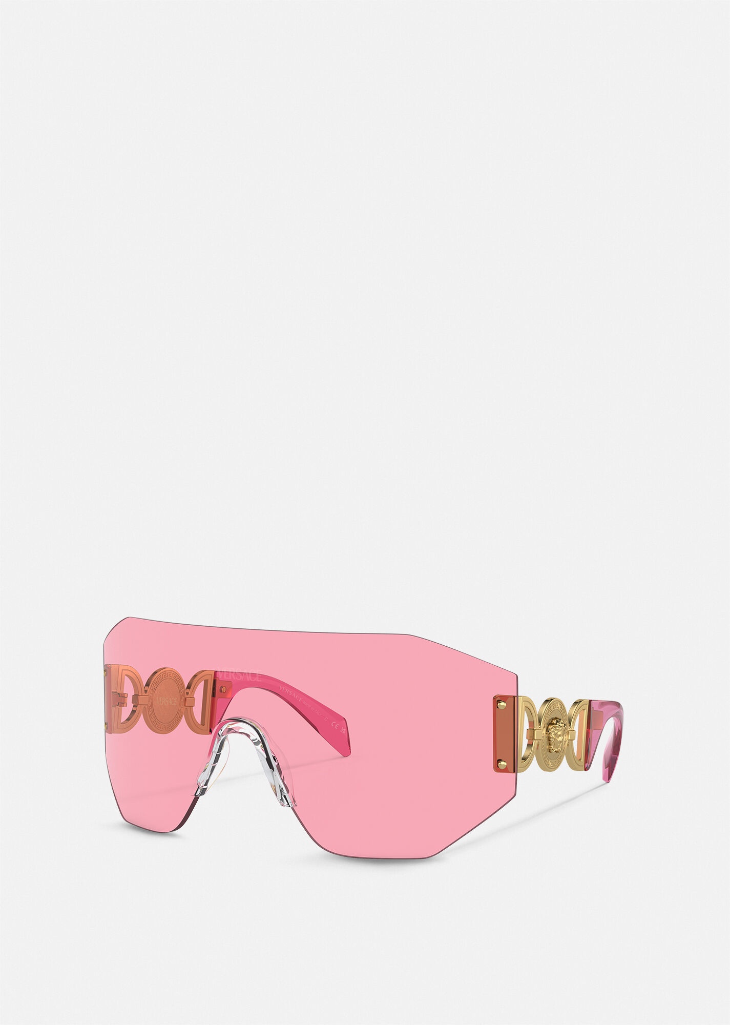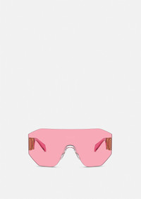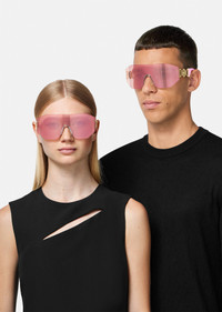 These wide sunglasses feature Medusa Biggie hardware at the temples and are accented with a logo at the nose bridge. DETAILS & CARE - Medusa Biggie hardware - Frame color: Pink - Temple color: Pink - Lens color: Pink - Frame: Metal - Temple: Metal SIZE & FIT - Lens width: 5.7" - Temple: 4.9"