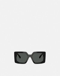 DETAILS An addition to the Medusa Biggie line, these wide, squared sunglasses with an injected construction feature the iconic Medusa Biggie embellishment at the wide temples. - Medusa Biggie hardware - Frame color: Black - Temple color: Black - Lens color: Dark gray - Frame: Injected - Temple: Injected Item: O4478U-OGB18755_RTU_TU_ONUL__ SIZE & FIT - Lens: W2.2 x H1.8" / W55 x H46.9 mm - Bridge: 0.7" / 17 mm - Temple: 5.5" / 140 mm