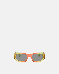 DETAILS These Medusa Biggie sunglasses feature rectangular multicolor transparent gradient frames and are accented by the Medusa Biggie emblem at the temples - Medusa Biggie hardware - Frame color: Transparent gradient yellow, red & green - Temple color: Transparent gradient yellow, red & green - Lens color: Gray - Frame: Injected - Temple: Injected Item: O4361-O5530153_ONUL SIZE & FIT - Lens: W2.1" x H1.4" / W53 x H36.2 mm - Bridge: 0.7" / 18 mm - Temple: 5.5" / 140 mm