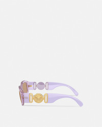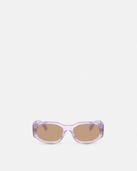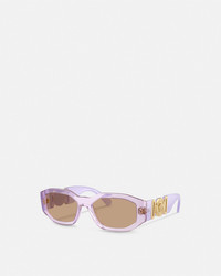 DETAILS These Medusa Biggie sunglasses feature rectangular transparent frames and are accented by the Medusa Biggie emblem at the temples - Medusa Biggie hardware - Frame color: Transparent lavander - Temple color: Opaline lavander - Lens color: Light brown - Frame: Nylon - Temple: Nylon Item: O4361-O55266353_ONUL SIZE & FIT - Lens: W2.1" x H1.4" / W53 x H36.2 mm - Bridge: 0.7" / 18 mm - Temple: 5.5" / 140 mm