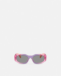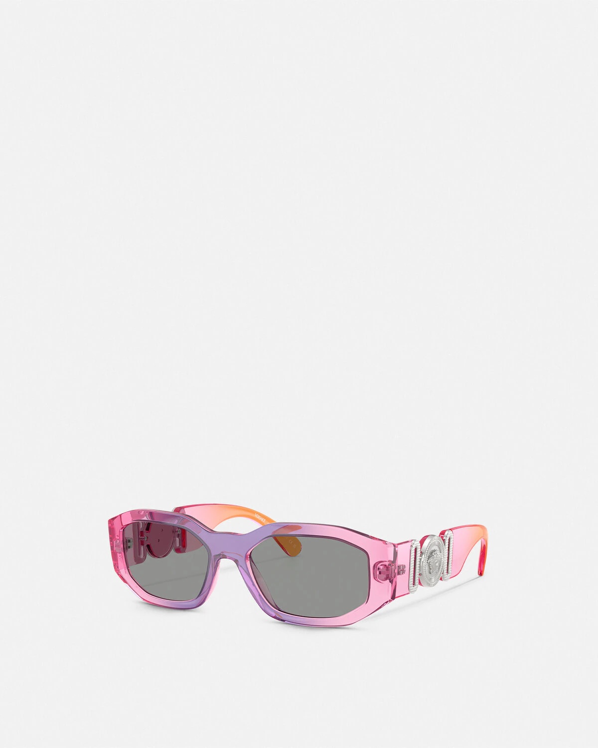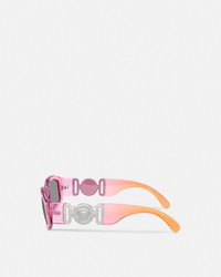 DETAILS These Medusa Biggie sunglasses feature rectangular multicolor transparent gradient frames and are accented by the Medusa Biggie emblem at the temples - Medusa Biggie hardware - Frame color: Transparent gradient pink, violet & orange - Temple color: Transparent gradient pink, violet & orange - Lens color: Gray - Frame: Injected - Temple: Injected Item: O4361-O5537153_ONUL SIZE & FIT - Lens: W2.1" x H1.4" / W53 x H36.2 mm - Bridge: 0.7" / 18 mm - Temple: 5.5" / 140 mm