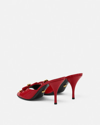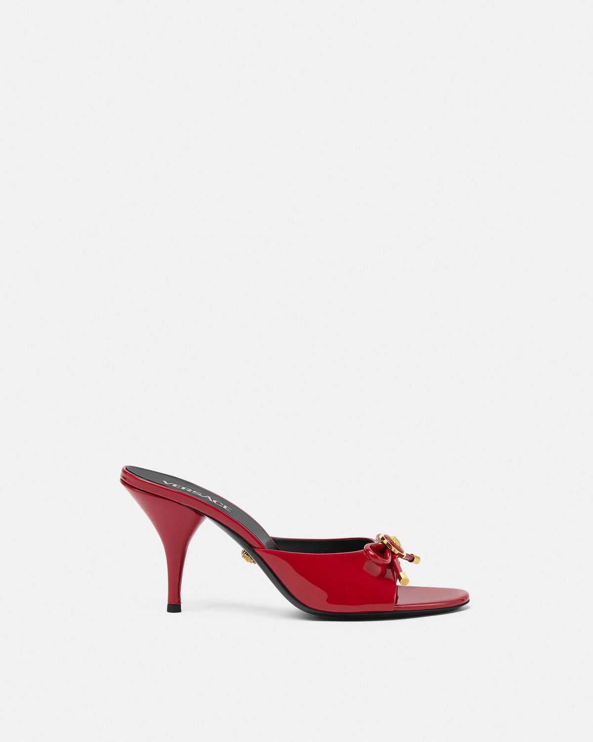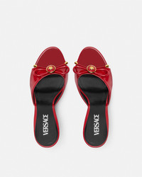DETAILS These patent leather opentoe mules feature stiletto heels and a round toe The pair features a distinctive enamel Medusa hardware on a round bow detail - Medusa hardware - Round toe - Stiletto heels - Outer composition: 100% Calf leather - Lining 1: 100% Lambskin - Lining 2: 100% Goat leather - Sole: 100% Calf leather Item: 1018239-D2VE_1RB3V SIZE & FIT - The shoe weighs approximately 7.1 oz / 0.2 kg for the model size 40 IT - Heel: 3.3" / 8.5 cm