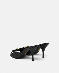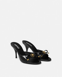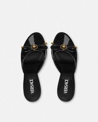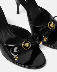 DETAILS These patent leather opentoe mules feature stiletto heels and a round toe The pair features a distinctive enamel Medusa hardware on a round bow detail - Medusa hardware - Round toe - Stiletto heels - Outer composition: 100% Calf leather - Lining 1: 100% Lambskin - Lining 2: 100% Goat leather - Sole: 100% Calf leather Item: 1018239-D2VE_1B00V SIZE & FIT - The shoe weighs approximately 7.1 oz / 0.2 kg for the model size 40 IT - Heel: 3.3" / 8.5 cm