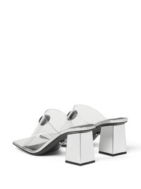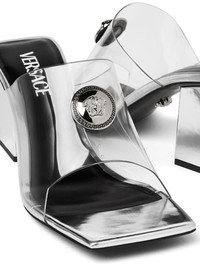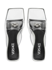 Medusa-Head 65mm metallic mules Highlights - Silver-tone - Calf leather - Metallic effect - Silver-tone logo plaque - Medusa head motif - Single toe strap - Square open toe - Slip-on style - Branded leather insole - 65mm block heel - Leather sole Made in Italy Composition Sole: Calf Leather 100% Lining: Goat Skin 100% Outer: PVC 100%