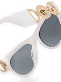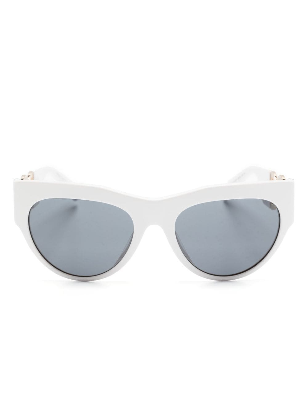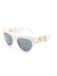Medusa cat-eye sunglasses Highlights - White - Acetate - Gold-tone hardware - Medusa head motif - Cat-eye frame - Blue tinted lenses - Straight tips - These glasses come with a protective case. Made in Italy Composition Metal 100%, Acetate 100% SIZE & FIT Measurement Arm Length 5.7 in(14.5 cm) Bridge Width 0.7 in(2 cm) Lens Diameter 2.2 in(5.5 cm) Total Width 5.5 in(14 cm)